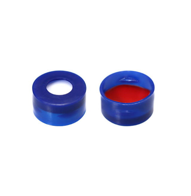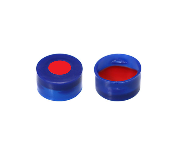 Caps, Snap-on, PTFE/silicone septa, 11mm, Blue, 100/pk.