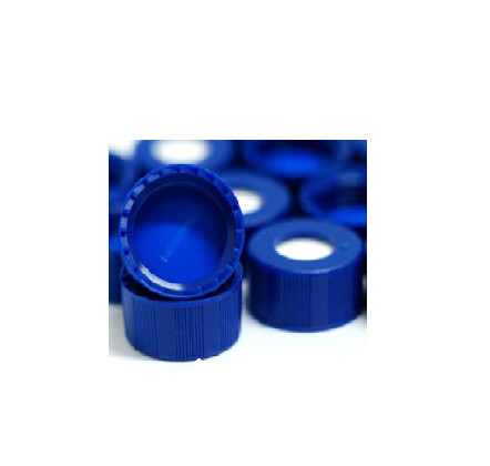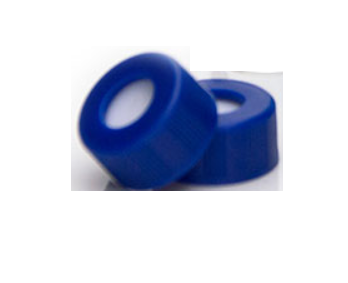 Caps, Screw-on, PTFE/silicone preslit septa, 12mm, Blue, 100/pk.
